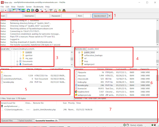 - Quickconnect – Untuk melakukan login dengan cepat ke FTP server.